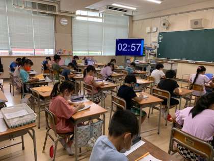 9月6日(月)8時30分より全校でチャレンジタイムを実施しました。各学級で100マス計算に取り組みました。さて今日は、何分何秒でできたでしょうか。これから毎日チャレンジします。