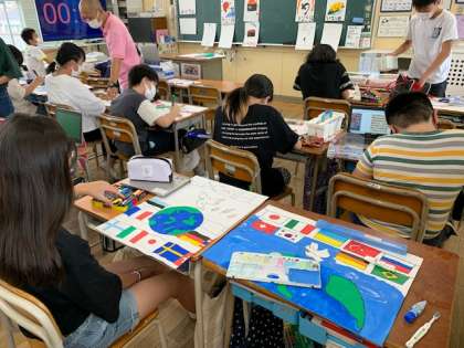 9月8日(水)1時間目、6年1組は図工でポスターを描いていました。