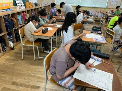 9月8日(水)1時間目、5年1組は算数で、「倍数と約数」のプリントをしていました。