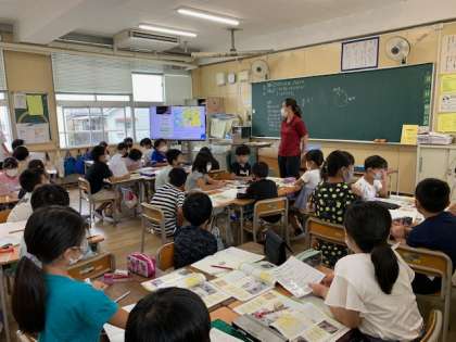 9月9日(木)1時間目、3年1組は社会科でパン工場ではたらく人はどんなことに気を付けているかを調べ話し合っていました。