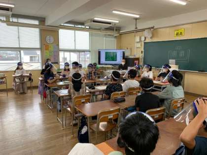 9月9日(木)1時間目、6年1組は国語で話し合いを実際に行っていました。一見、学級会かと思いました。司会や書記もいました。