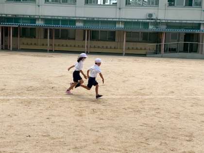9月9日(木)3時間目、1年生は体育で50m走の記録を測っていました。この記録を運動会のグループ分け等に使うようです。先生は、「1学期よりも速くなっている。」と話しておられました。