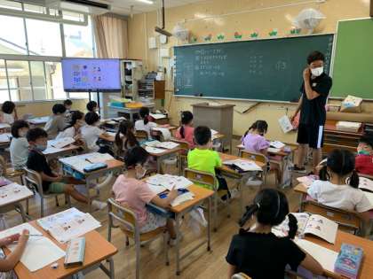 9月10日(金)1時間目、1年2組は算数で「いくつですか」を学習していました。「10といくつ」でいくらになるかを考えていました。