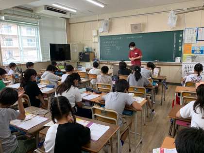 9月13日(月)1時間目、5年2組は家庭科で「できるよ 家庭の仕事 仕事を分担しよう」を学習していました。子どもたちは各家庭で何ができるでしょうか。「お手伝い」と「仕事」は違います。自分の分担として継続していくことが仕事だと思います。ぜひ子どもたちと話し合い、責任をもって取り組ませてほしいと思います。
