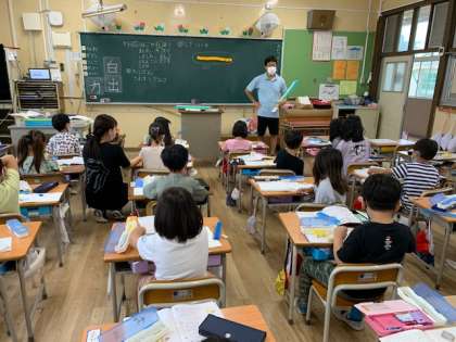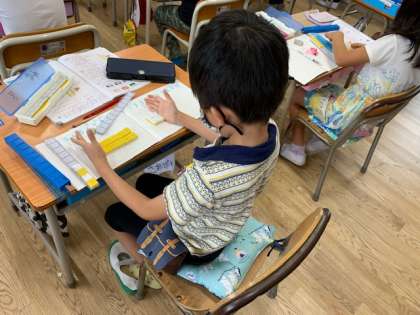 9月17日(金)1時間目、1年2組は算数で12+4の問題をみんなで考えていました。