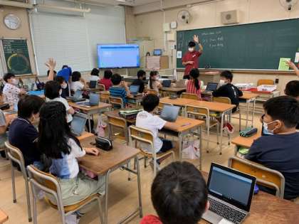 9月17日(金)1時間目、4年2組は外国語活動で「I like 〇〇.」を学習していました。この学習をSKYMENYU CLOUDを使っての発表にチャレンジしましたが、通信環境が悪くパソコンが起動できない子が何人かいました。パソコンを使う際の難しい問題ですが、使っていかないと使えなくなってしまいます。続けることが大事ですね。