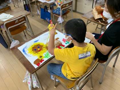 9月17日(金)3時間目、2年2組は図工で身の回りの物を使って作品を作っていました。