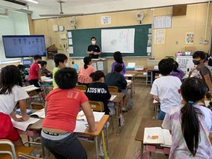 9月21日(火)1時間目、3年2組は国語で「サーカスのライオン」をがくしゅうしていました。主人公の「じんざ」の様子を読み取っていたのでしょう。「のっそり」と立つことを実際に体で表現していました。