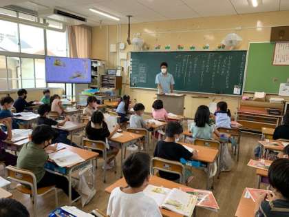 9月22日(水)1時間目、1年2組は道徳で「はしのうえの おおかみ」を学習しました。