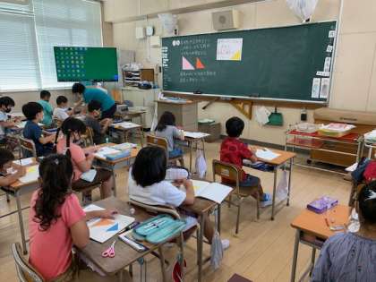9月22日(水)1時間目、2年2組は算数で直角三角形について学習していました。