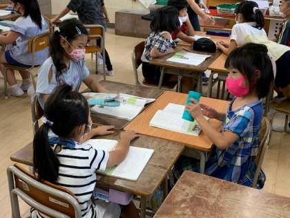 9月24日(金)1時間目、2年2組は国語で「ニャーゴ」を学習していました。「登場人物の気持ちになって音読しよう」というめあてで、班で役割を分担していました。この後班で練習をしたものと思います。