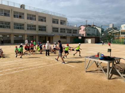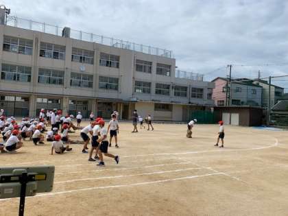 9月28日(火)1時間目、4年生は」体育でリレーと団体競技の練習をしていました。
