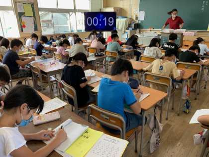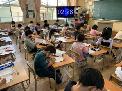 9月29日(水)チャレンジタイムでの100マス計算に集中して取り組んでいます。