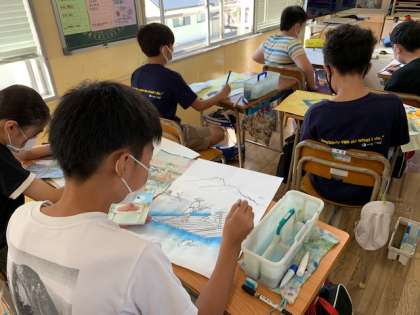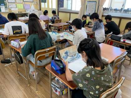 9月29日(水)1時間目、6年1組は図工で浮世絵の模写をしていました。細かい作業を集中してしていました。