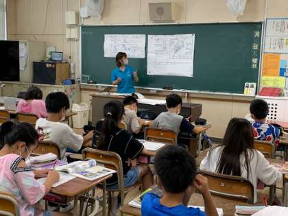 9月30日(木)3時間目、5年2組は理科で台風の進路について学習していました。