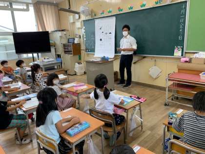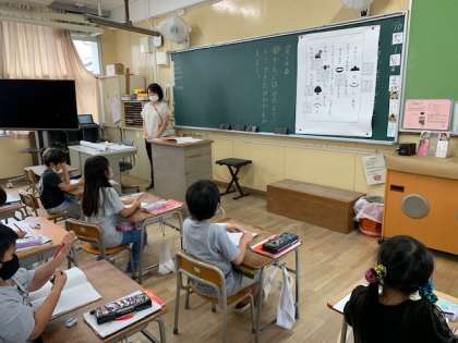 10月1日(金)5時間目、1年生は学習参観で国語を学習していました。「漢字はどのようにしてできたのか考えよう」というめあてで取り組んでいました。初めての参観でお家の人が来ているかを確かめようとそわそわしている人もいました。授業が進むにつれて授業に集中するようになりました。