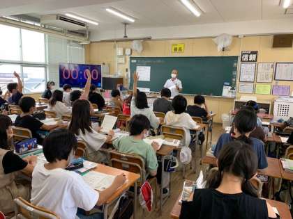 10月1日(金)6時間目、6年生は参観で社会科を学習していました。安土桃山時代について、織田信長、豊臣秀吉、徳川家康の政策等を比較して考えているようでした。