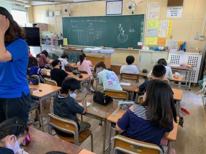 10月4日(月)1時間目、3年1組は総合でピクトグラムを作っていました。東京オリンピックの開会式で話題になったピクトグラムですね。運動会で自分たちがする「台風の目」のピクトグラムを作っていました。普通の絵になってしまう子が多いようで、なかなか難しそうです。