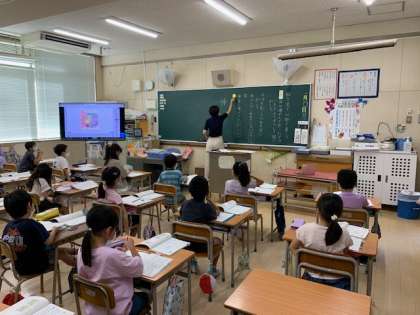 10月4日(月)2時間目、2年1組は「絵を見てお話をが書こう」を学習していました。「3の場面でおこったできごとを想像して絵に描こう」というめあてで学習していました。