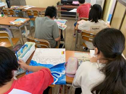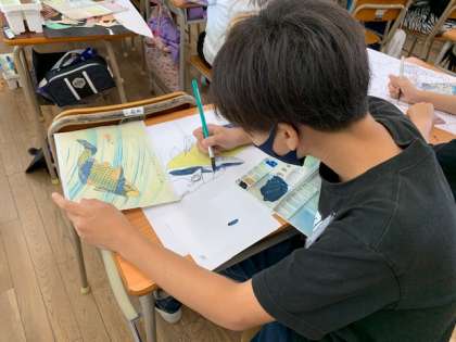 10月4日(月)2時間目、6年2組は図工で浮世絵の模写をしていました。とっても慎重に描いていました。