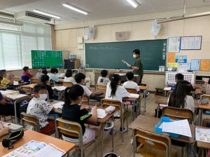 10月6日(水)1時間目、5年2組は外国語科で「What time do you 〇〇?」という聞き方を学習していました。