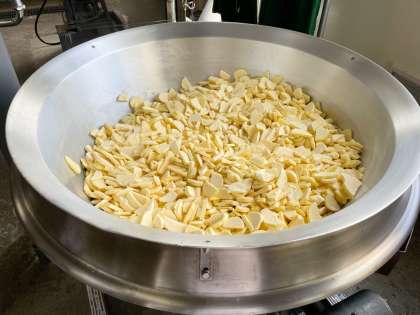秋に収穫されるさつまいもを使っています。やわらかく煮たさつまいもに、砂糖、バター、牛乳、クリームを加えて焼き物機で焼いています。