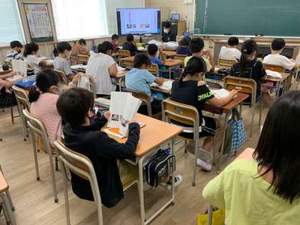 10月8日(金)2時間目、5年2組は国語で「和の文化を受けつぐ」を読んでいました。
