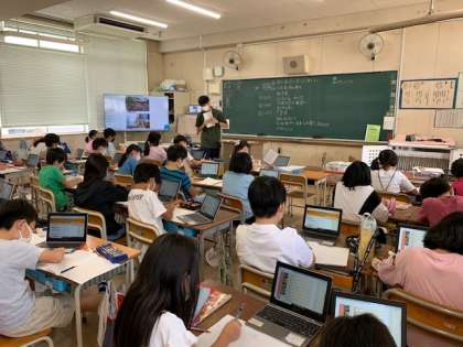 10月11日(月)1時間目、4年2組は社会科で大阪府の祭りを調べていました。