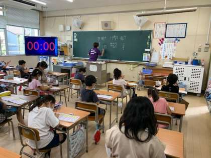 10月12日(火)5時間目、2年1組は国語で新出漢字の練習をしていました。