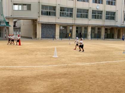 10月13日(水)4時間目、3年生は体育で「台風の目」の練習をしていました。