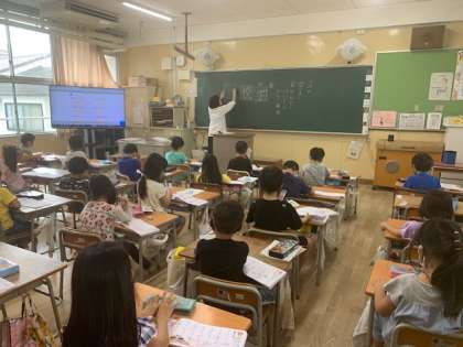 10月13日(水)5時間目、1年は1組も2組も国語で漢字の学習をしていました。画数の多い漢字が増えてきたなあと思いました。