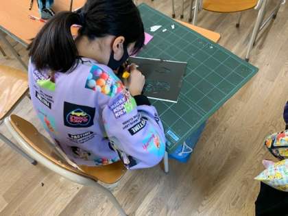 10月15日(金)1時間目、5年1組は図工で切り絵をしていました。
