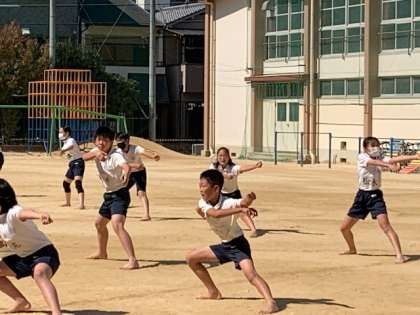 10月15日(金)4時間目、6年は体育でソーランの練習をしていました。前半、後半に分かれて踊り、それぞれ気付いたことを相手に伝え全員で踊る時に課題をもって踊れるようにしていました。積極的に意見が出され、真剣に聞いている様子が印象的でした。一生懸命踊っている姿を見ると、気が付くと涙が出ていました。子どもたちが頑張っている姿は感動しますね。