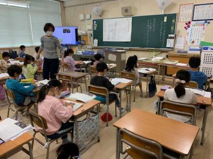 10月18日(月)2時間目、2年1組は国語で「ビーバーの大工事」を学習していました。「ビーバーは何のためにダムを作るのか考えよう」というめあてで文章を読み取っていました。