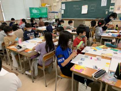 10月19日(火)2時間目、4年1組は社会科で防災マップを作っていました。