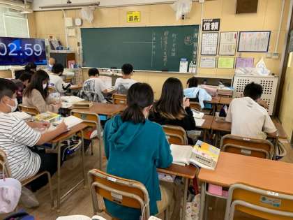 10月21日(木)1時間目、6年1組は国語で「町の幸福論」を学習していました。段落分けをし、言葉の意味調べをしていました。