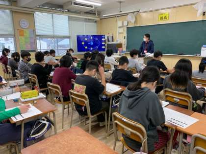 10月25日(月)1時間目、6年1組は理科で「宇宙空間から見た月の形」の図を使って学習していました。