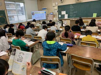 10月25日(月)1時間目、4年2組は社会科で「天神祭りを支える人々」の学習をしていました。