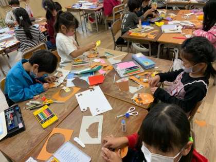 10月25日(月)3時間目、1年1組は生活科でカラフルなどんぐりを作っていました。