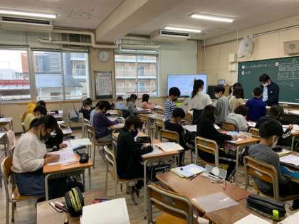 10月25日(月)3時間目、5年2組は算数で三角形の高さと面積の関係を調べていました。