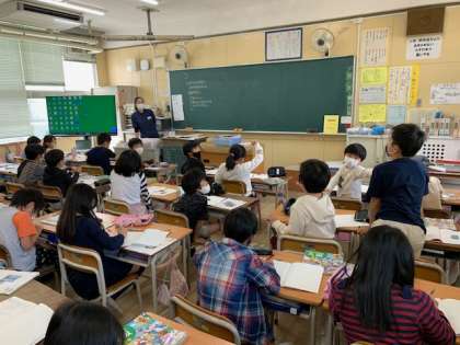 10月26日(火)1時間目、3年1組は社会科でコンビニエンスストアを学習していました。子どもからレジという新しい視点の発言がありました。