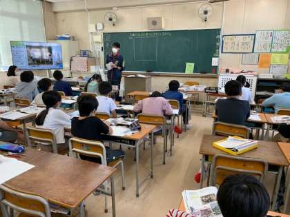 11月1日(月)1時間目、4年1組は社会科で大阪府の祭りや文化財について学習していました。