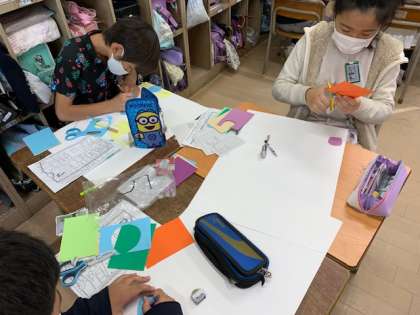 11月1日(月)1時間目、4年1組は総合的な学習の時間で、防災マップを作っていました。