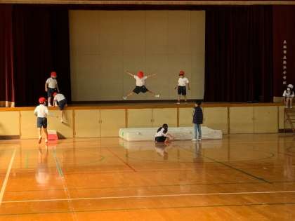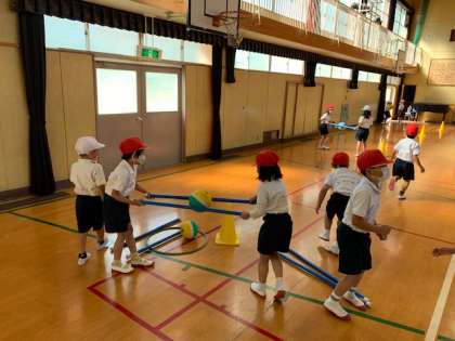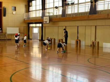 11月1日(月)2時間目、1年2組は体育でサーキットのようにいくつかの種目にチャレンジしていました。