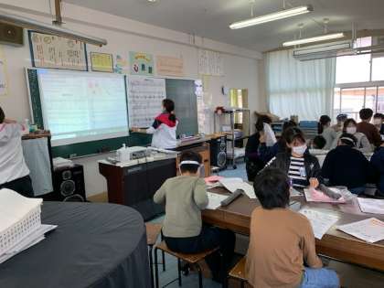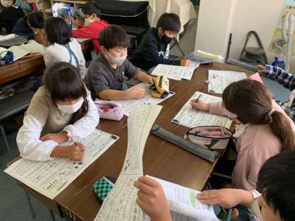11月1日(月)2時間目、4年1組は音楽で「茶色の小びん」に階名を書き込んでいました。