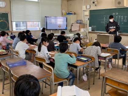 11月4日(木)チャレンジタイムの後、リモートで児童集会が行われました。「パンはパンでも食べられないパンは?」というようななぞなぞが出されました。楽しそうに考えていました。