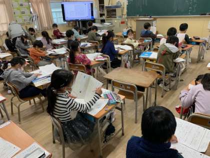 11月8日(月)1時間目、1年1組は国語で発見したことを作文していました。