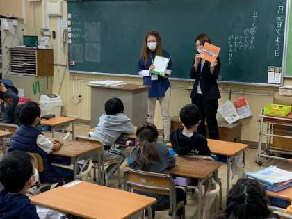 11月9日(火)1年2組では「お話ベル」さんによる読み聞かせがありました。「ねずみくんのチョッキ」と「ふしぎなナイフ」を聞かせていただきました。子どもたちは楽しそうにお話の世界に入っていました。