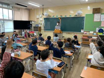 11月9日(火)3時間目、1年2組は算数で「はこのかたち」を学習していました。