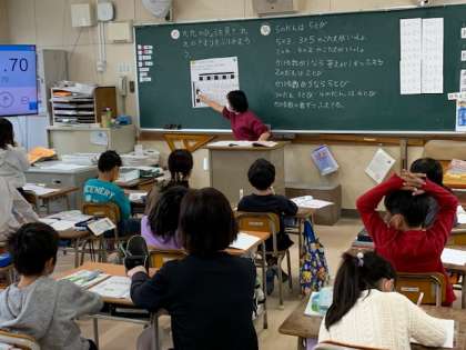 11月10日(水)1時間目、2年2組は算数で九九の表を見て、九九のきまりを見つけていました。